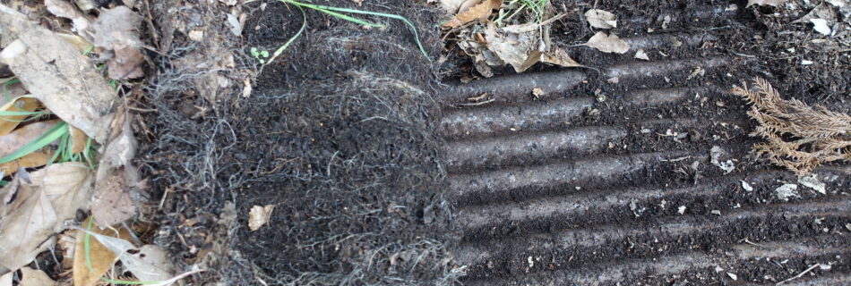 菌ちゃん農法を知り一度やってみようと倒れた木をまとめて置いてみた。その上に小枝や雑草を積み重ね気が付けば他の場所よりも元気に草や木が生える場所に。しかし土の状態を見る事は出来なかった。 残念に思い数年。 うちの納屋の …
